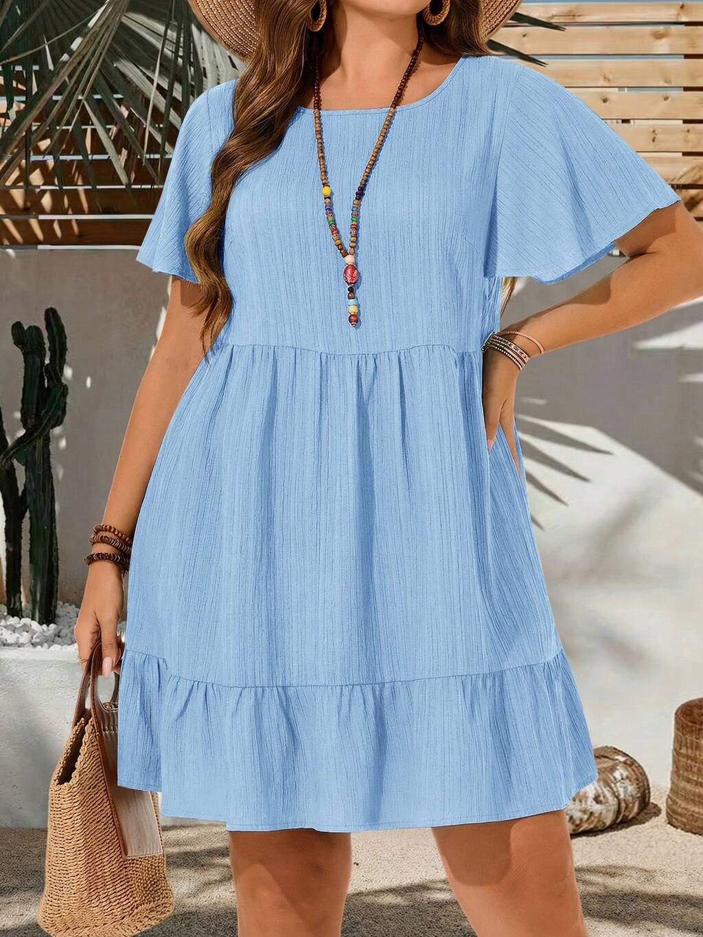 Plus Size Vacation Casual Solid Color Short Sleeve Dress,Summer Outfits For Women,Easter Dress Women,Bohemia,Rave Outfits,Easter Outfit Curve,Country Concert Outfit