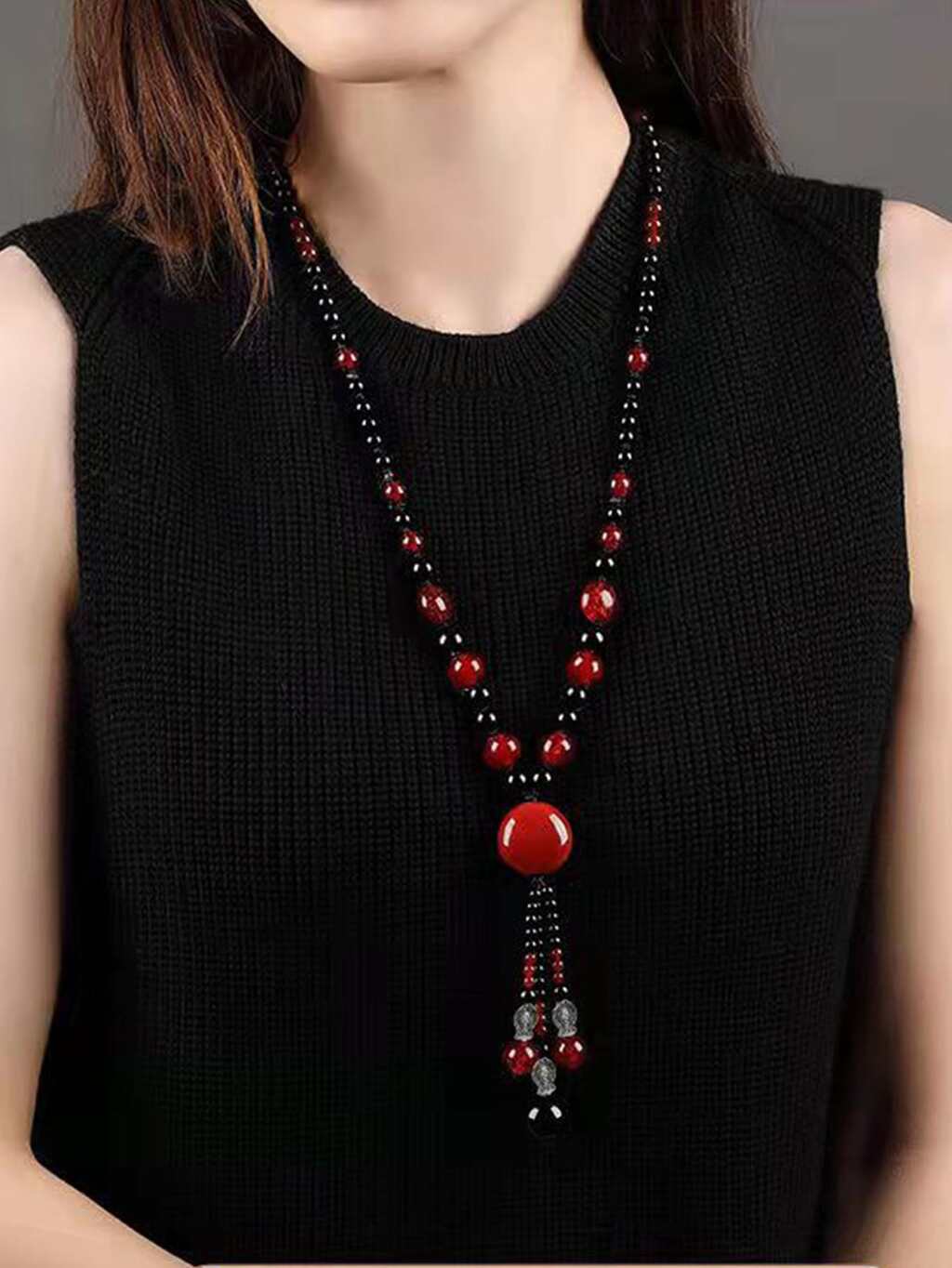 1pc Vintage Heart-Shaped Beaded Resin Handmade Necklace, Small And Portable Valentines,Mom,Mother,Mother's Day,Gift
