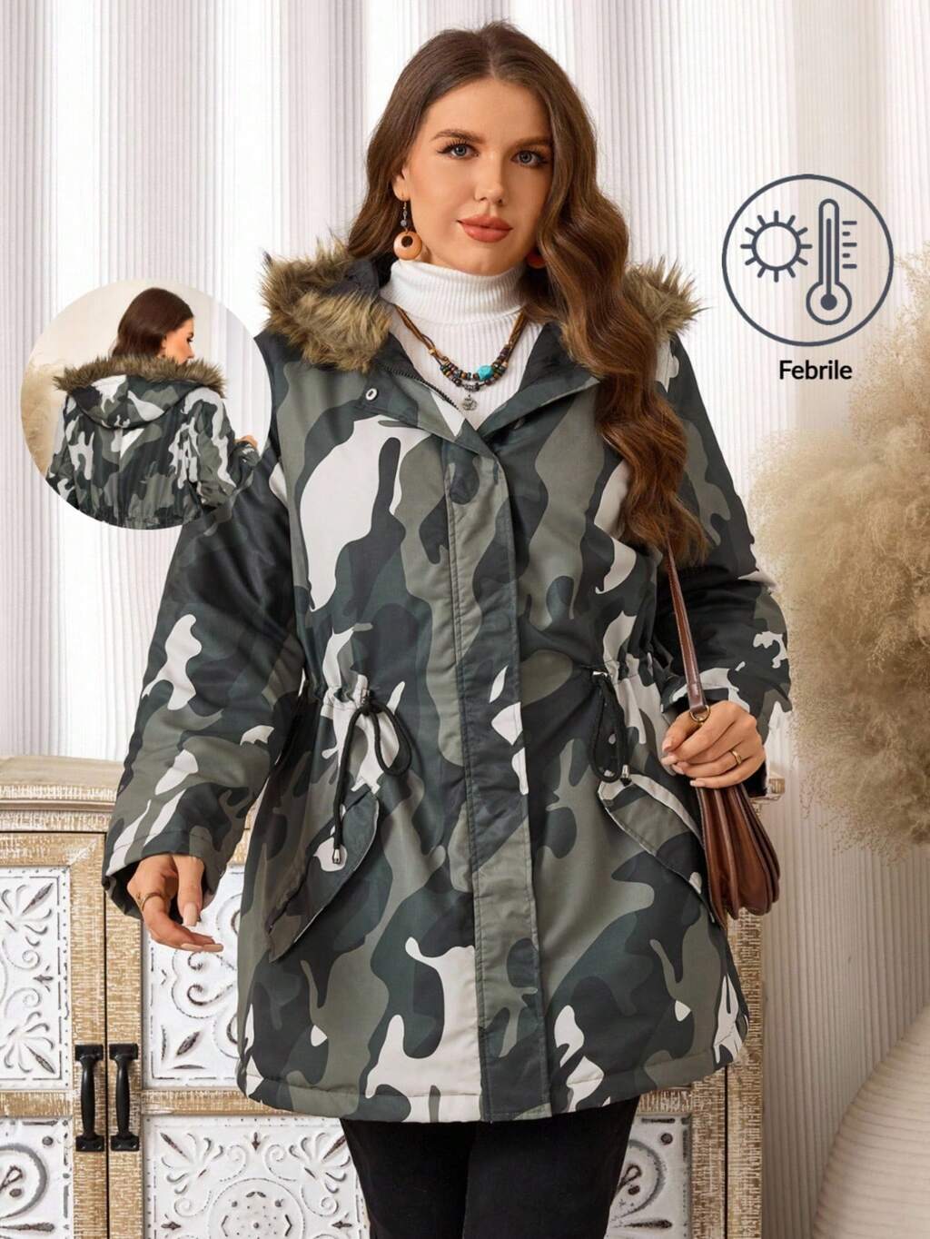 Plus Size Camouflage Casual Long Sleeve Warm Winter Coat Fall For Women Winter Country Style For Women Country For Women Country Concert Winter Coats Winter For Women Cozy Fall And Winter For Women
