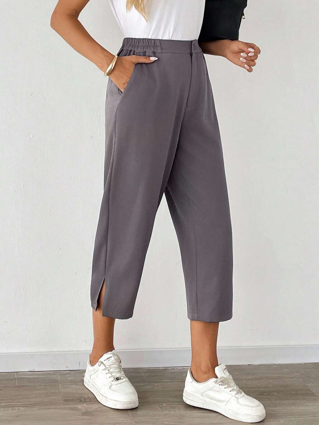 Women's Casual Solid Color Tapered Suit Pants, Versatile Summer Pants Pants For Women Pants Women Teacher Outfits For Women Office Outfits For Women Business Casual Woman Grey Cropped Pants Petite Cropped Pants Elastic Waist Pants Fall