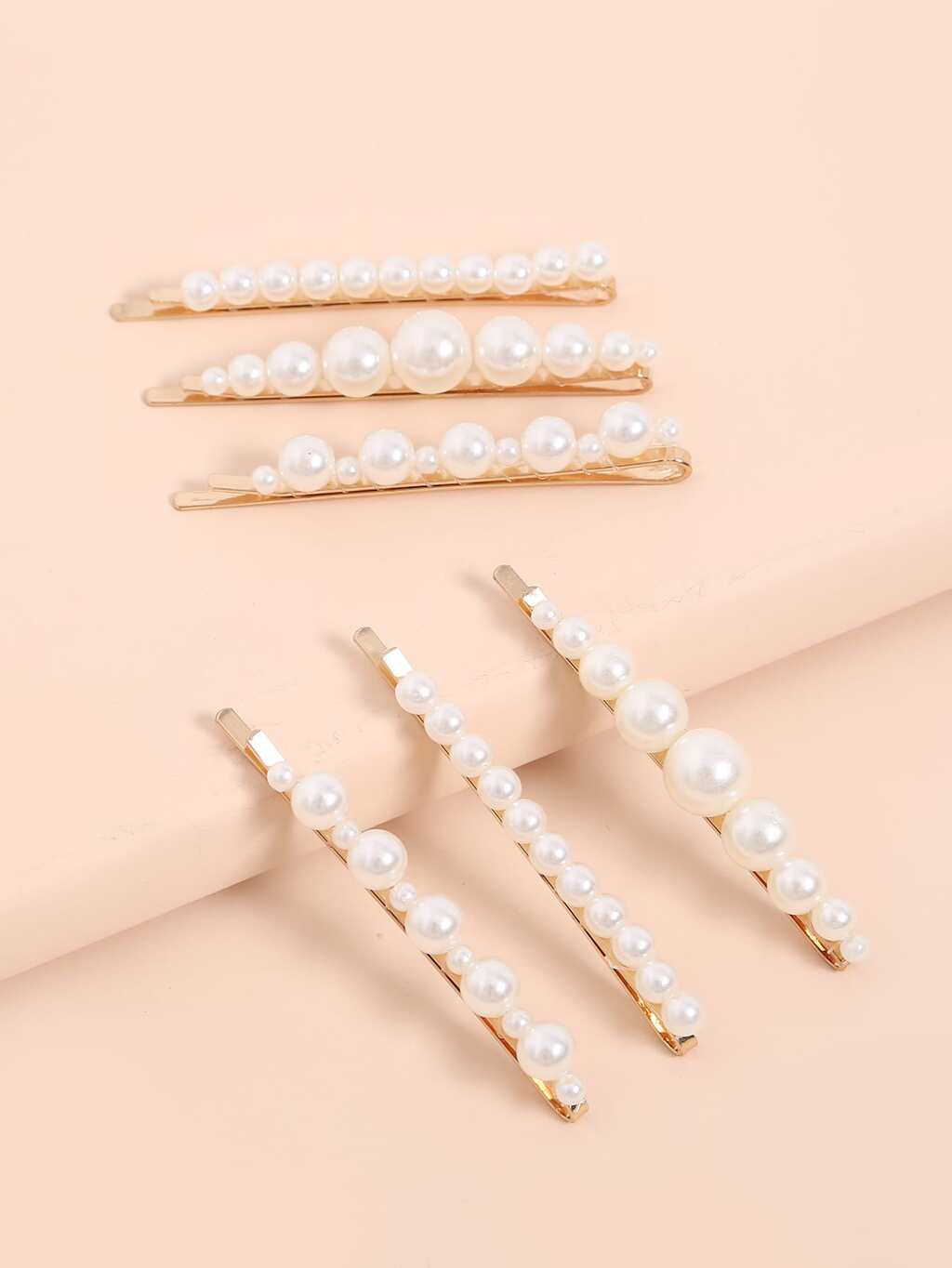 6pcs Faux Pearl Beaded Hair Clip Elegant Claw Clips Hair Claws Hair Barrettes, School Stuff, Pearl Hair Accessories, Head Accessories, Hairpin