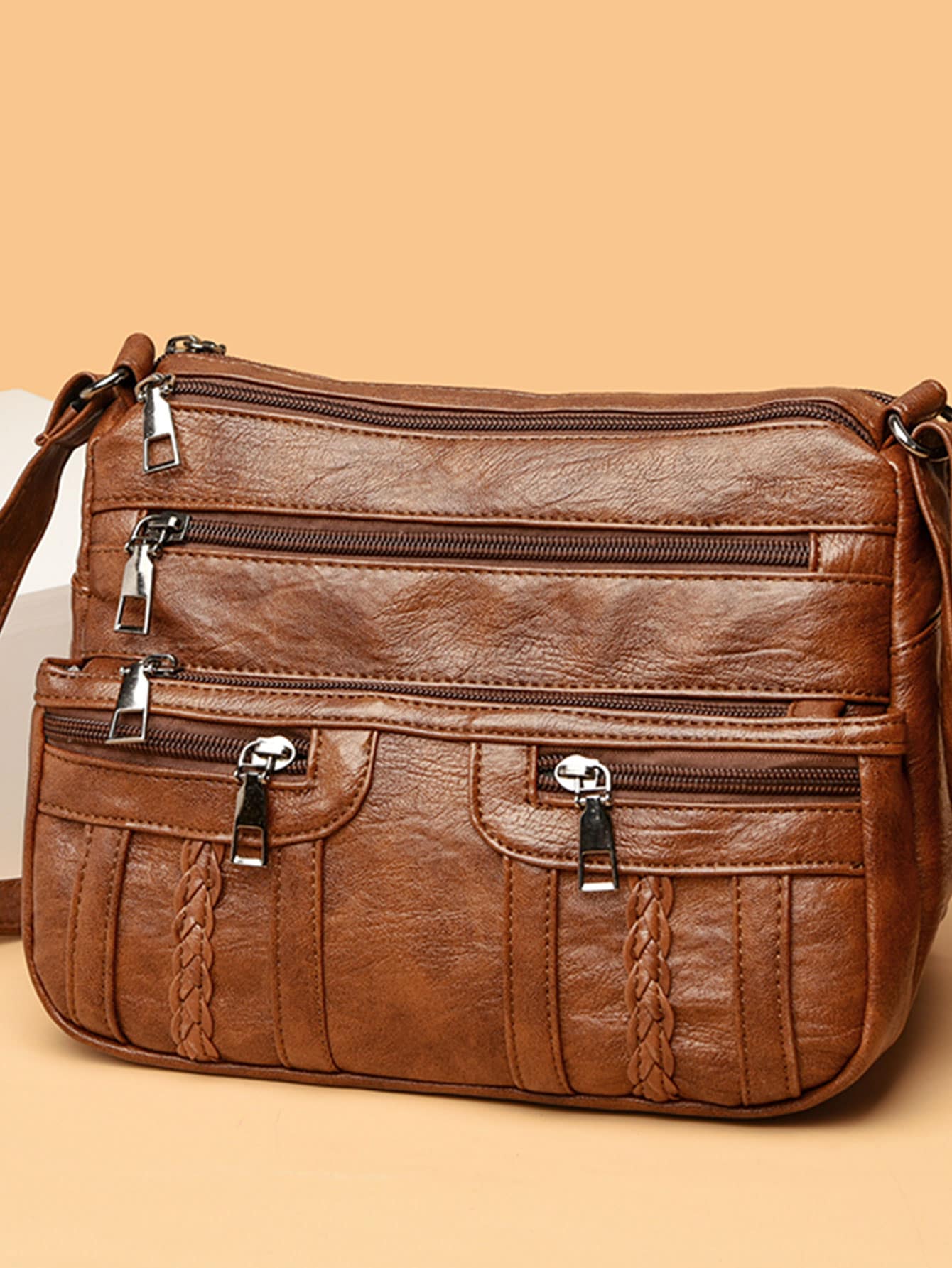 Vintage Retro Braided Detail Multi Zipper Square Bag, Mother's Day Gift For Mom, Retro Inspired Vintage Bag For Women