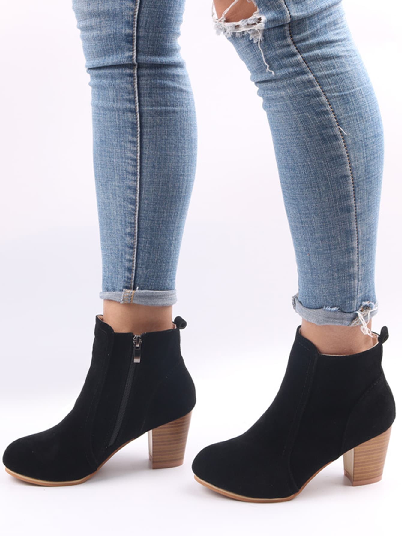 Fall/Winter Style With Tops, Women's Elegant Classic Solid Color Black Boots, Imitating Suede With Side Zipper,Boots For Women