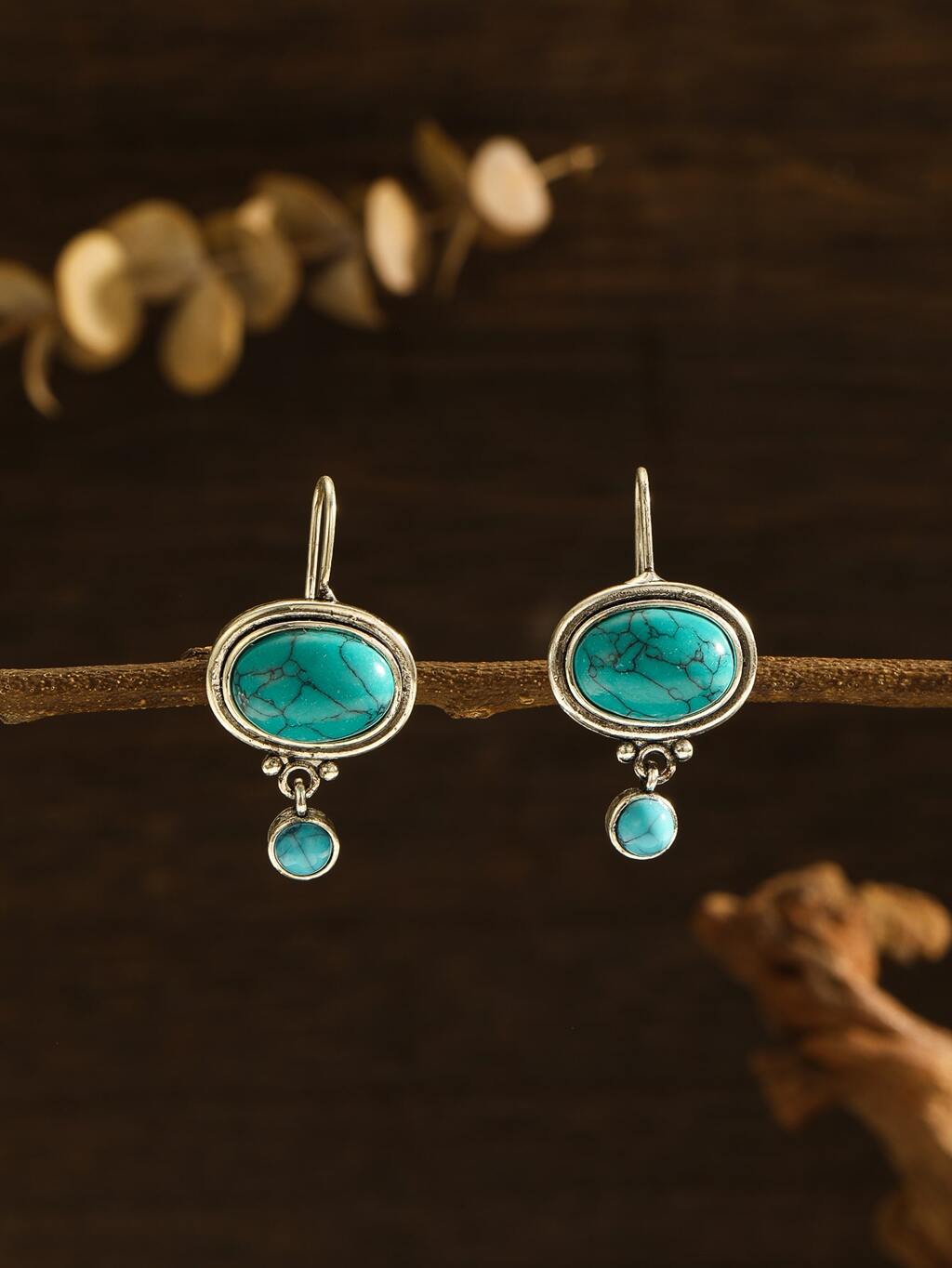 1 Pair Vintage Silver Plated Resin Oval Earrings, Available In Black, Green, White
