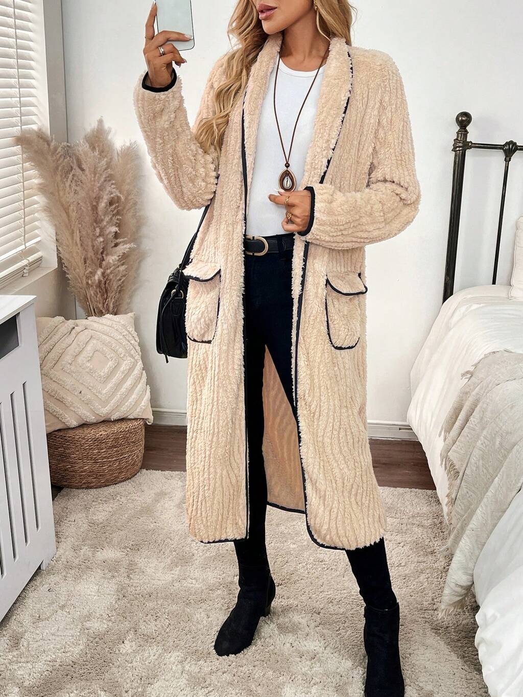 Dual Pocket Drop Shoulder Fuzzy Coat