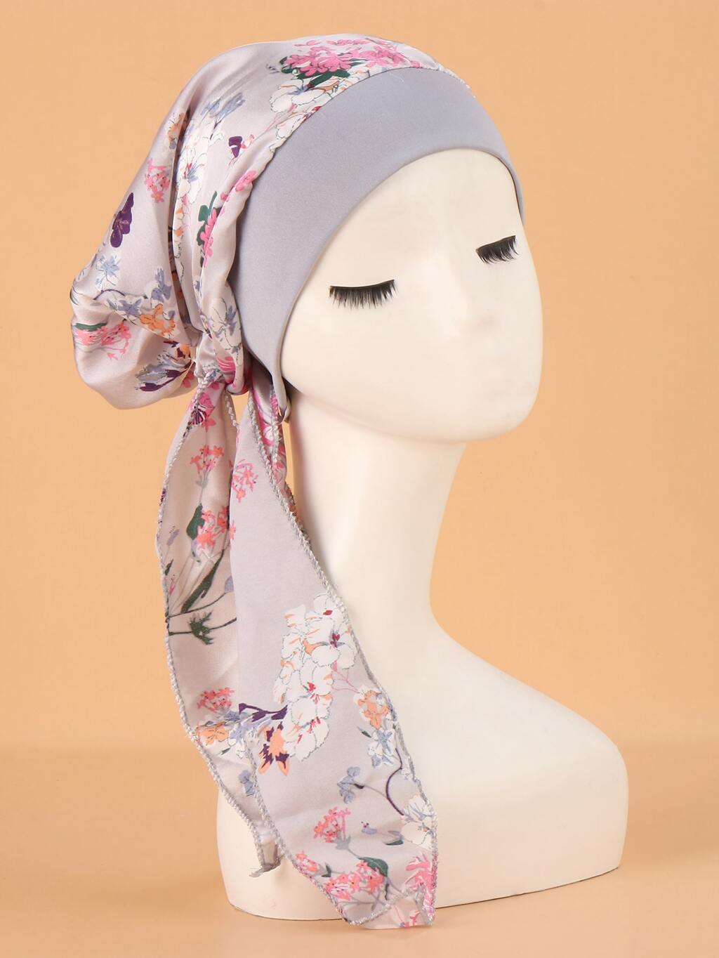 Flower Print Long Tail Head Wrap Boho Silk Bonnet Satin Bonnet Valentine's Day Sleep Bonnet,Summer,Beach,Hat