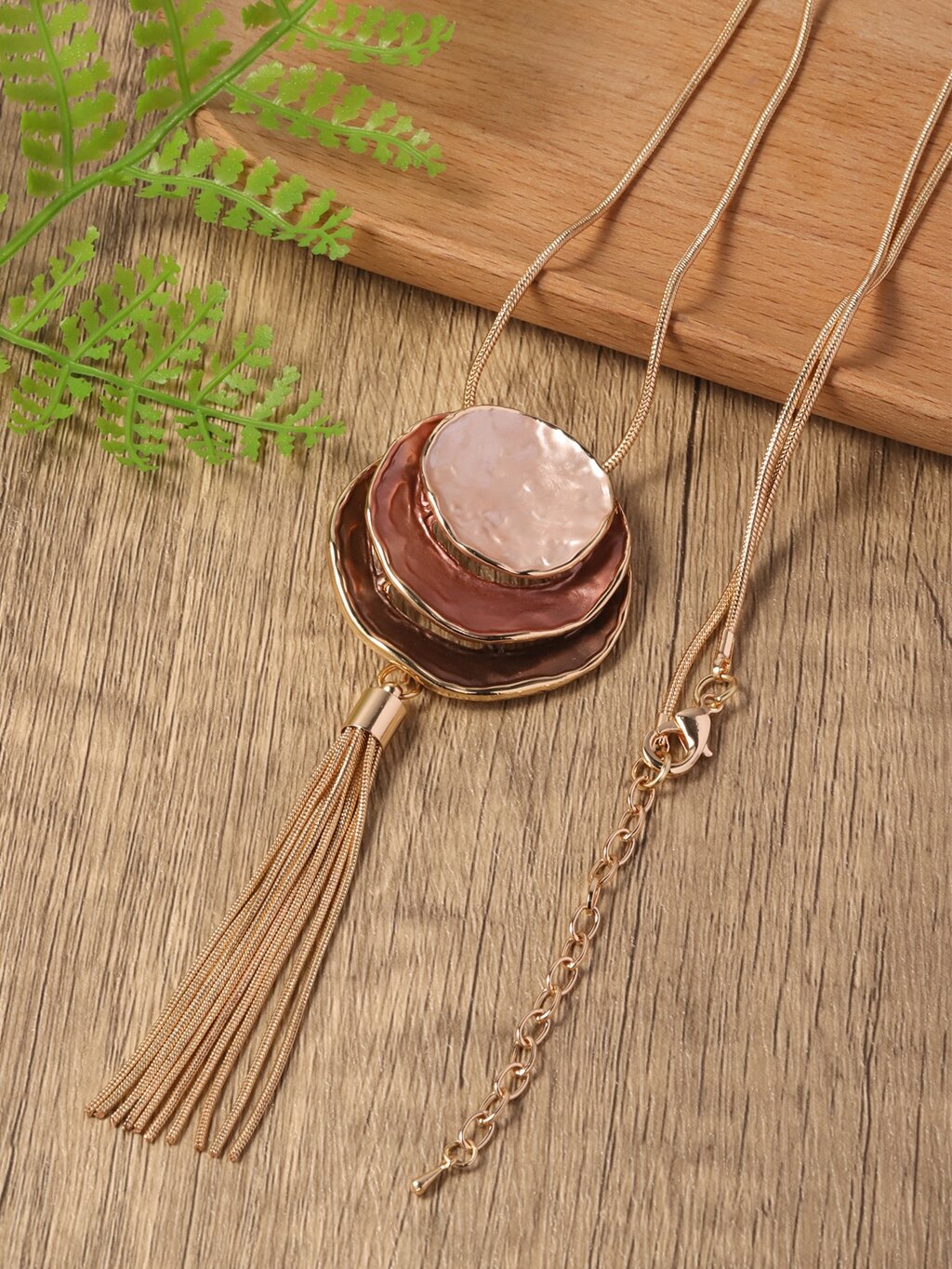 2pcs Minimalist Geometric Circle & Stripe Pendant Necklaces, Versatile For All Seasons, Suitable For Gift, Greeting Cards