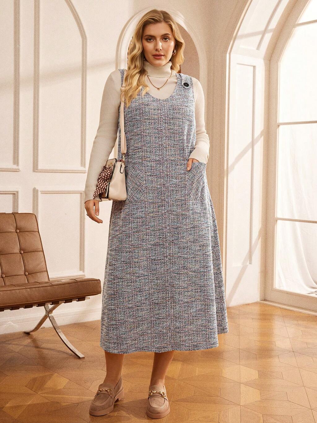 Plus Size Women Casual Pocket Strap Dress Winter Clothes For Women Cozy Fall And Winter Clothes For Women Casual Long Dresses New Year Clothes  Clothes For New Year Elegant Dress Women