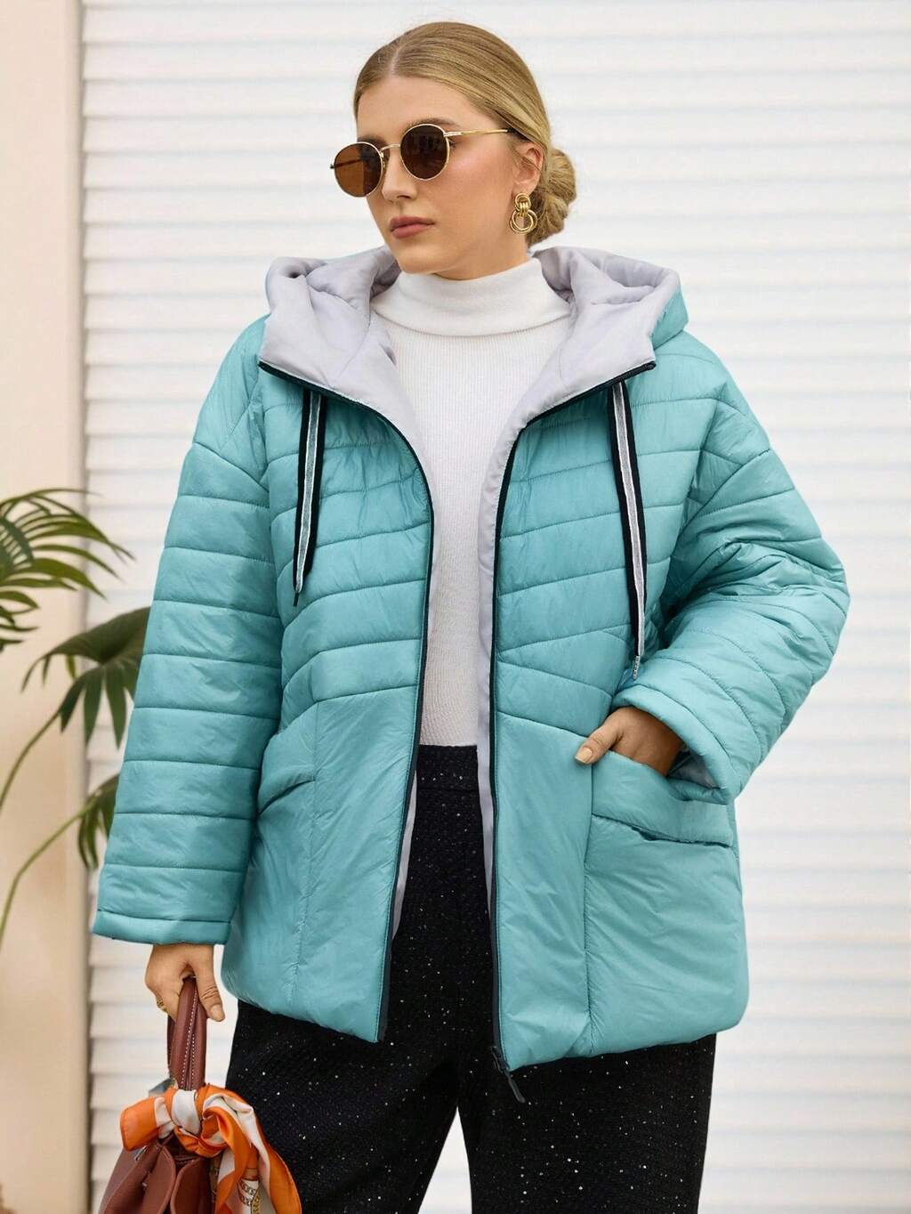 Plus Size Women's Street Fashion Casual Warm Solid Color Zip-Up Hooded Padded Coat, Winter Coat, Thick Padded Coat, Winter, Going Out, 2025 New , Simple And Fashionable For Everyday Wear, Thickened Padded Coat, Quilted Coat With Pockets, Going Out, 2025 New , Simple And Fashionable For Everyday Wear, Christmas For Women , New Year