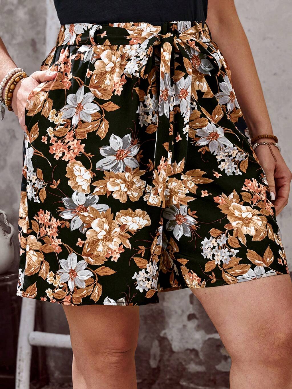 Plus Size Floral Print Loose Casual Shorts With Pockets For Summer/ Vacation Vacation Outfits Women Holiday Outfits For Women Beach Vacation Outfits For Women Spring Break Outfits Floral Shorts