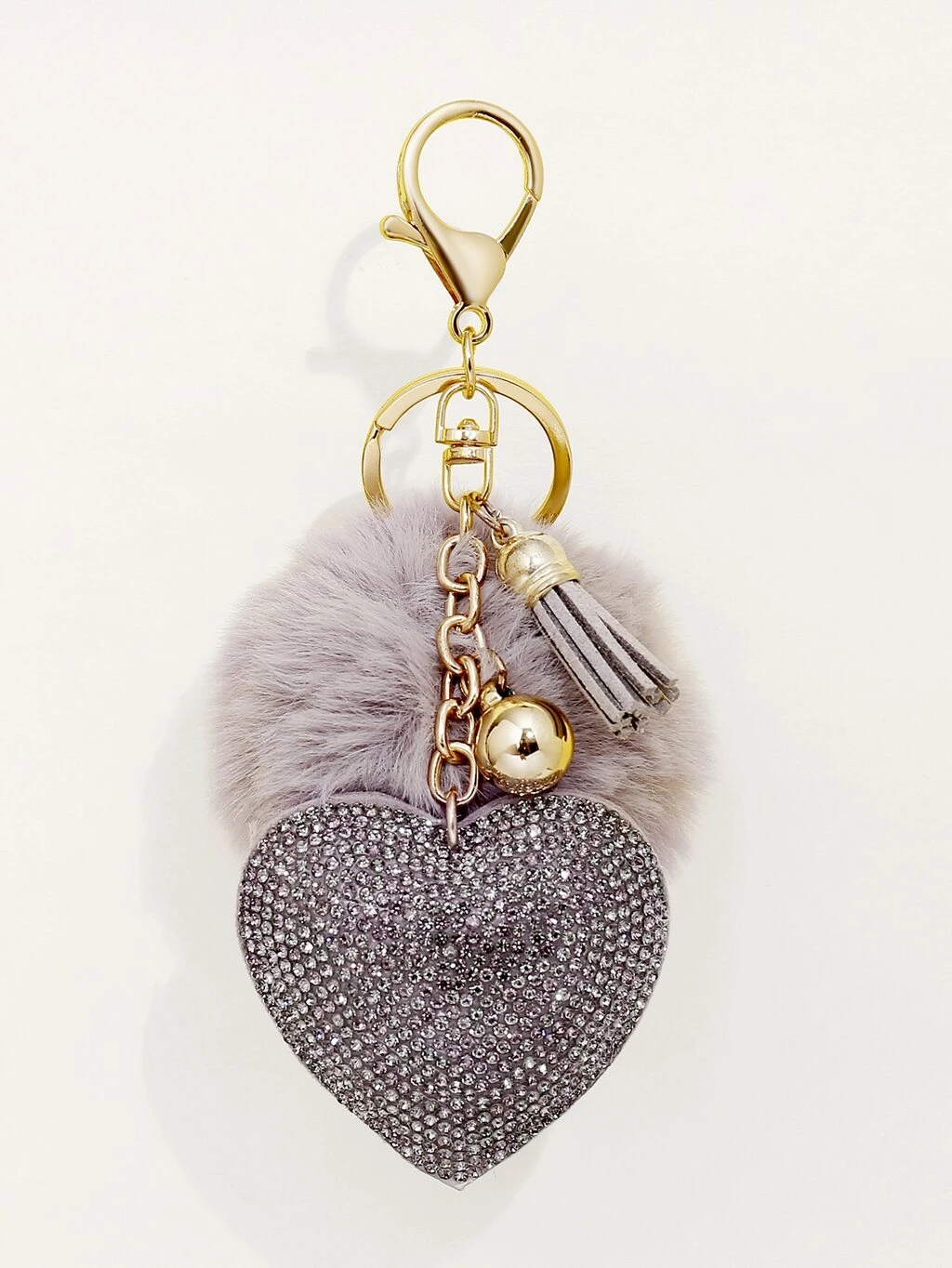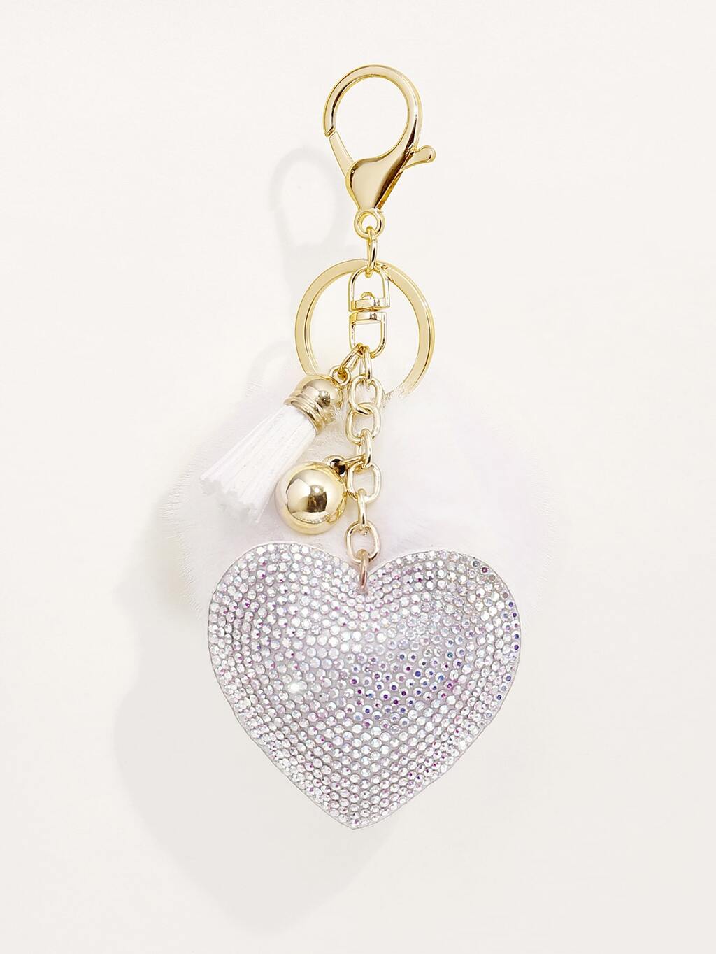 1pc Women Rhinestone Inlaid Korean Velvet Solid Color Heart Shaped Keychain, Heart Pom Pom Keyring For Valentine's Day, Mother's Day, Wedding Favors Valentines Car Accessories Bag Charm School Cute Goth Y2k Bag Accessories Lanyards With Id Holder Car Accessories Bag Charms