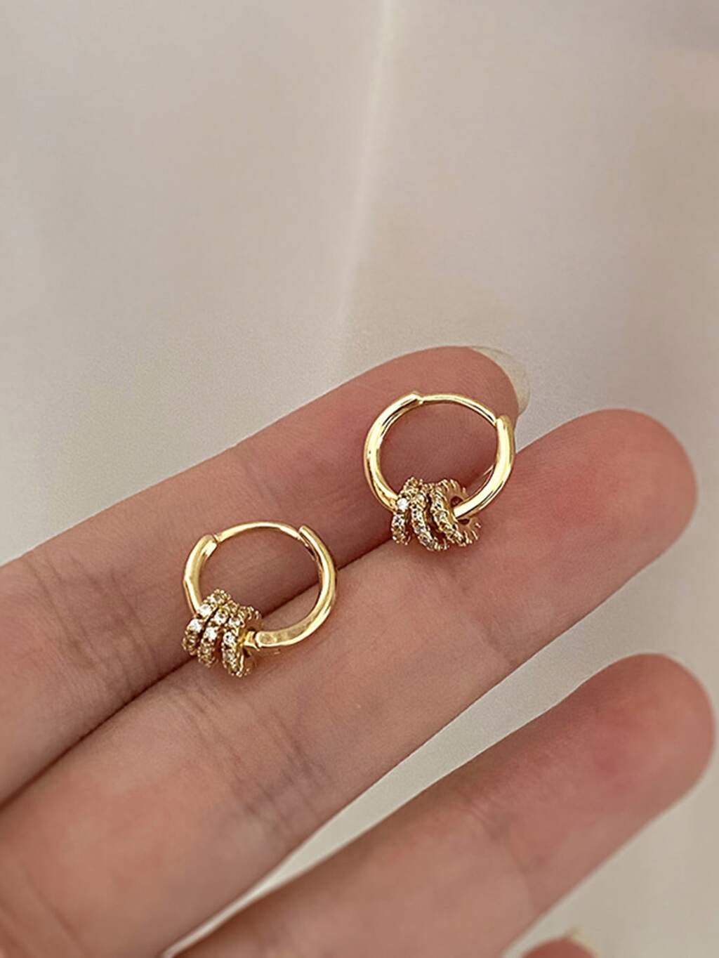 Cubic Zirconia Decor Hoop Earrings