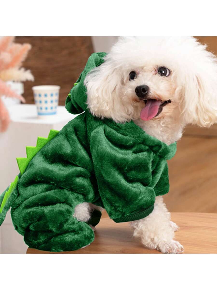 1pc Coral Fleece Cartoon Dinosaur Hooded Pet Costume For Small Pets, Daily Wear & Warm-Keeping