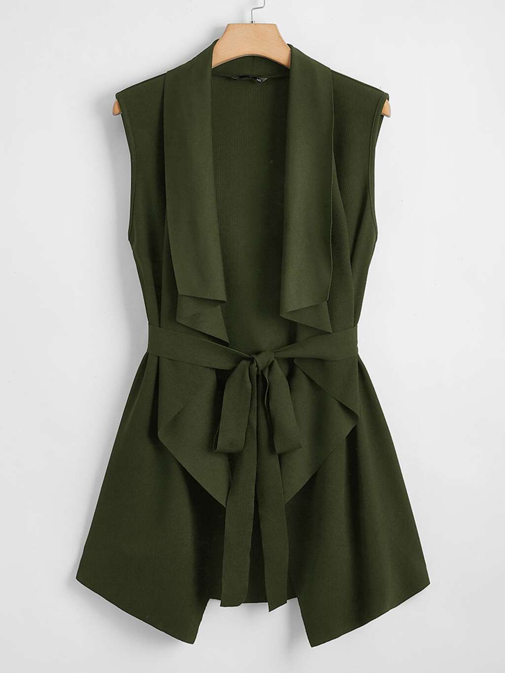 Plus Contrast Binding Waterfall Collar Belted Overcoat