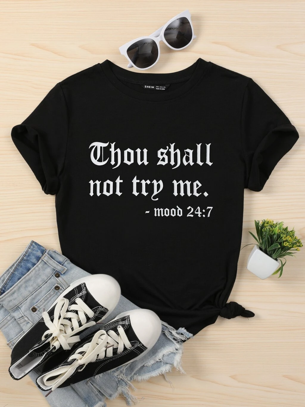 Plus Slogan Graphic Tee, Thou Shall Not Try Me, Women Summer Top
