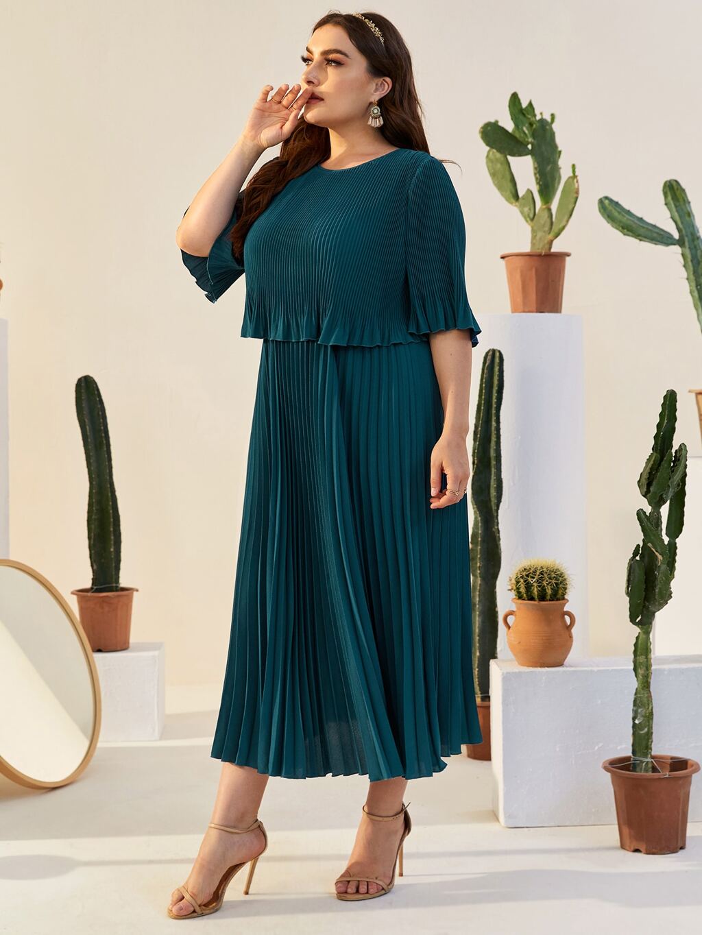 Plus Dobby Mesh Sleeve Split Hem Peekaboo Dress