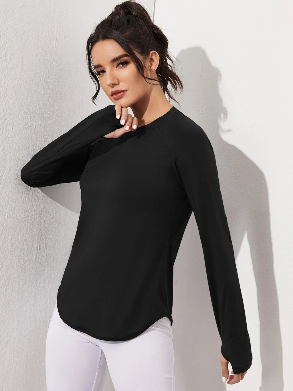 Solid Crop Slim Sports Tee Fitted Shirt Compression Shirt