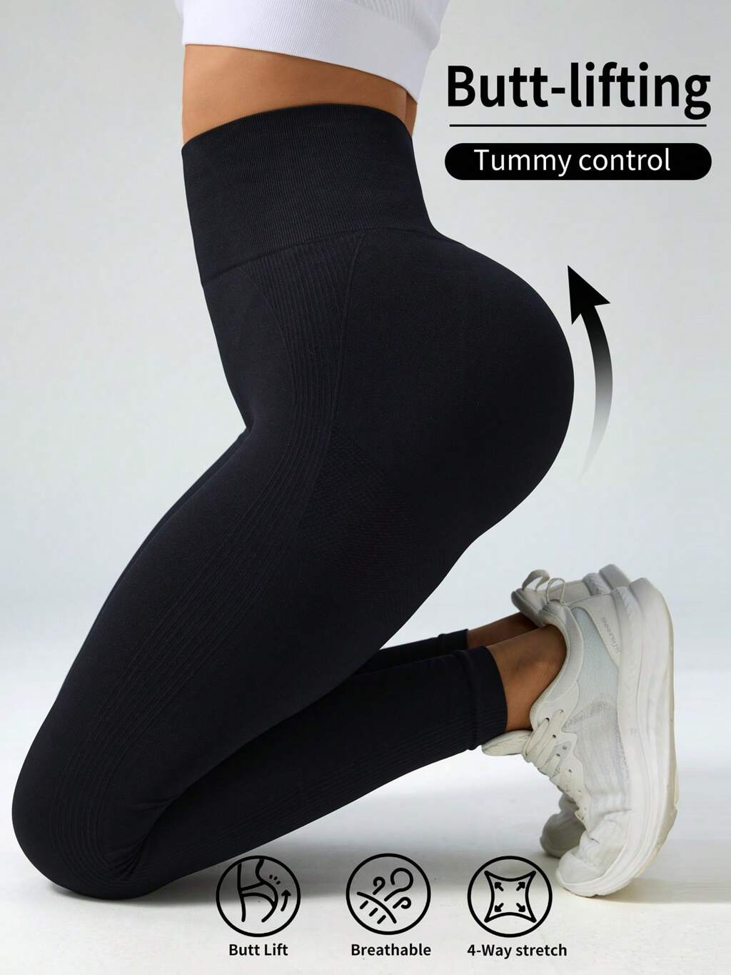 Yoga Leggings Breathable Softness Tummy Control Sports Tights With Wide Waistband