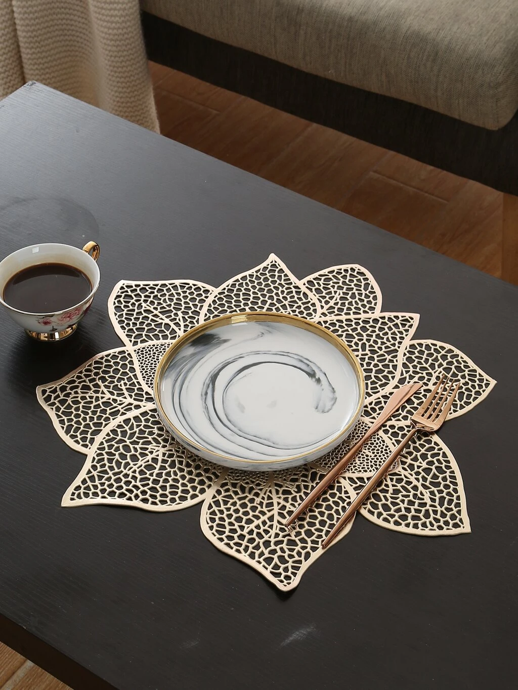 1pc Purple Flower-shaped Pvc Placemat With Gold Foil Stamping, Heat Resistant Table Mat For Western Dining Table/coffee Table