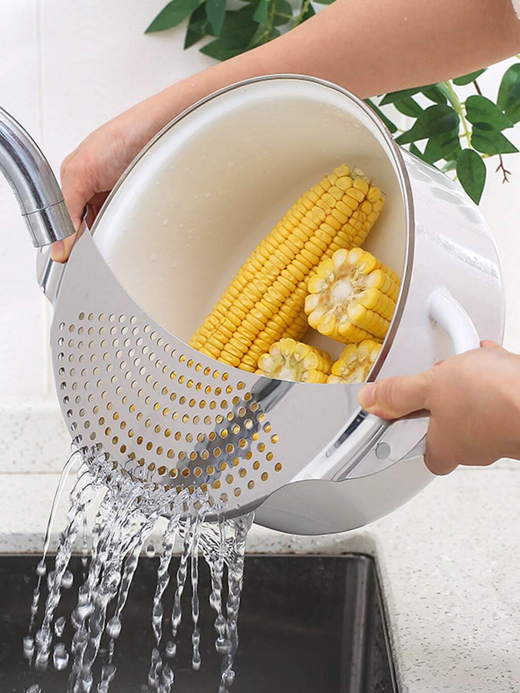 1pc Kitchen Leak-proof Baffle,Kitchen Stainless Steel Pot Strainer, Hand Held Pot Drainer, Fruit Washing Filter