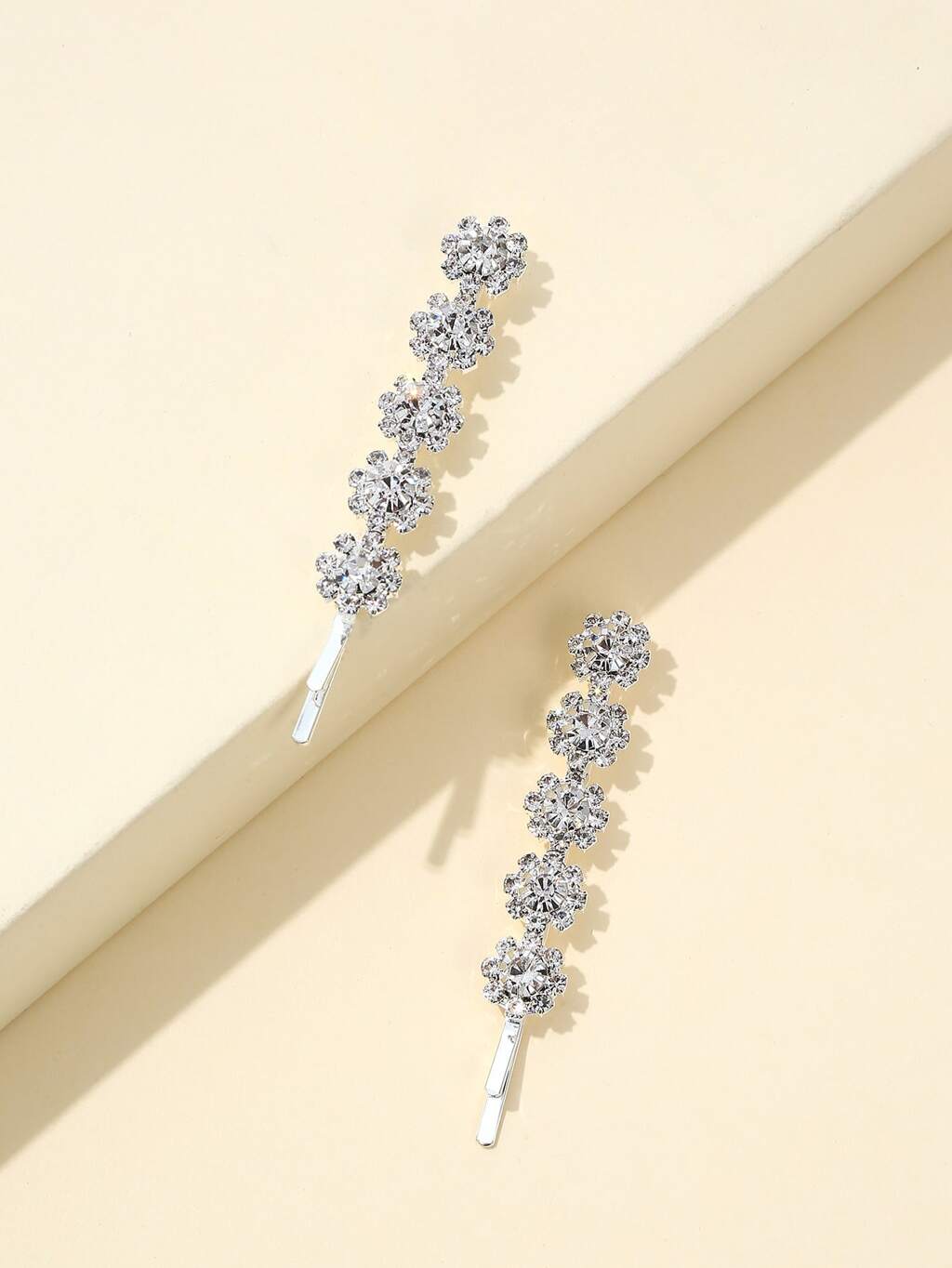 2pcs Rhinestone Decor Hair Clip Elegant, Hair Accessories, Hair Barrettes Hair Clips Claw Clips Hair Claws, School Stuff, Flower, Vacation Outfits Woman, Looks Of Party, Head Accessories, Hairpin, Bobby Pins