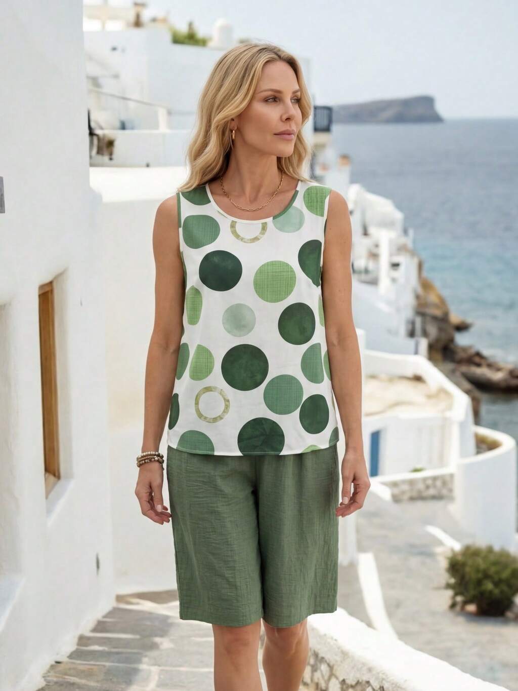 Elegant Green Two-Piece Set For Women Summer Spring Outfit With Pearl Neck Cape Sleeve Top And Wide Leg Pants, Perfect For Vacation Beach Going Out Wedding Guest And Festival Occasions