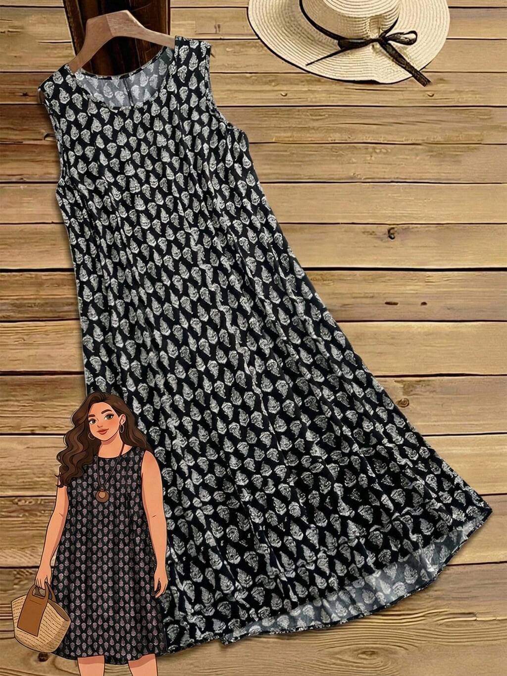 Plus Size Women Summer Casual Vacation Allover Print Sleeveless Loose Dress Summer Dress Summer Outfits Summer Clothes Spring Dress Spring Outfit Women Spring Clothing Country Style For Women Country Dress For Women Vacation Outfits Women