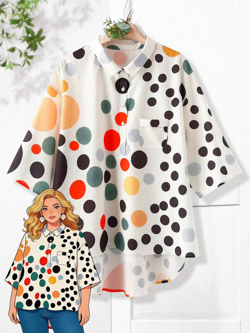 Plus Size Casual Polka Dot & Ditsy Floral Petal Sleeve Shirt Summer Tops Summer Outfits Summer Clothes Spring Spring Outfit Women Spring Clothes Country Style For Women Vacation Outfits Women Floral Tops Beach Outfits For Women Beach Vacation Outfits For Women Seaside Retro Mannequin Window Display