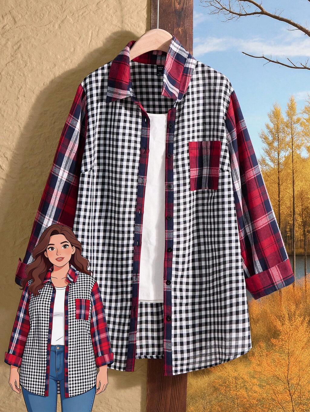 Plus Size Long Sleeve Casual Plaid Shirt, Fall Women Plaid Shirt For Women Fall For Women Winter Country Style For Women Country Concert For Women Christmas Country Style Cozy Fall And Winter For Women Christmas Party