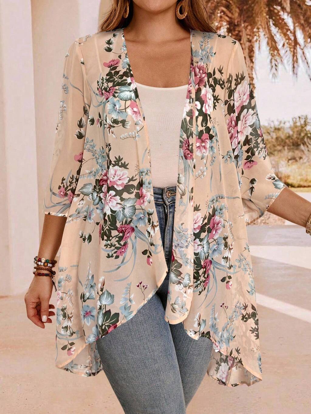 Plus Size Elegant Asymmetrical Hem Front Open Lightweight Summer Jacket,Country Casual Vacation Outfits Woman,Simple And Fashionable For Everyday Wear,Summer Outfits For Women,Western Wear Women In Fall/Winter