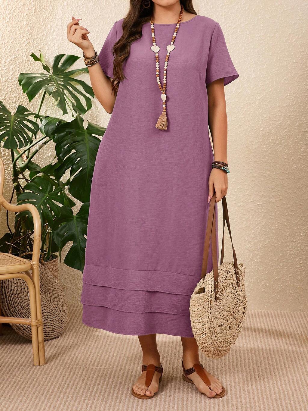 Plus Size Casual Solid Color Short Sleeve T-Shirt, Summer