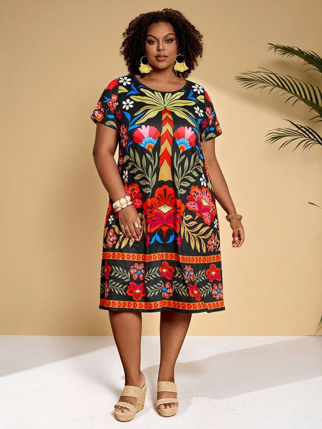 Plus Size Women's Casual Plant Print Short Sleeve Dress,Plus Size Women Summer Clothes African Print Clothes Womans 2 Piece Sets Women S Summer 2 Piece Sets Women Vacation Outfit Sets Women Clothes Sets Womens Plus Size Dresses Tropical Outfit For Women Plus Size Plus Size Summer Dresses Plus Size Vacation Outfits Plus Size Cruise Outfits For Women Bubu Dress Bubu Dress For Ladies African Clothes For Women Jamaican Dresses Women