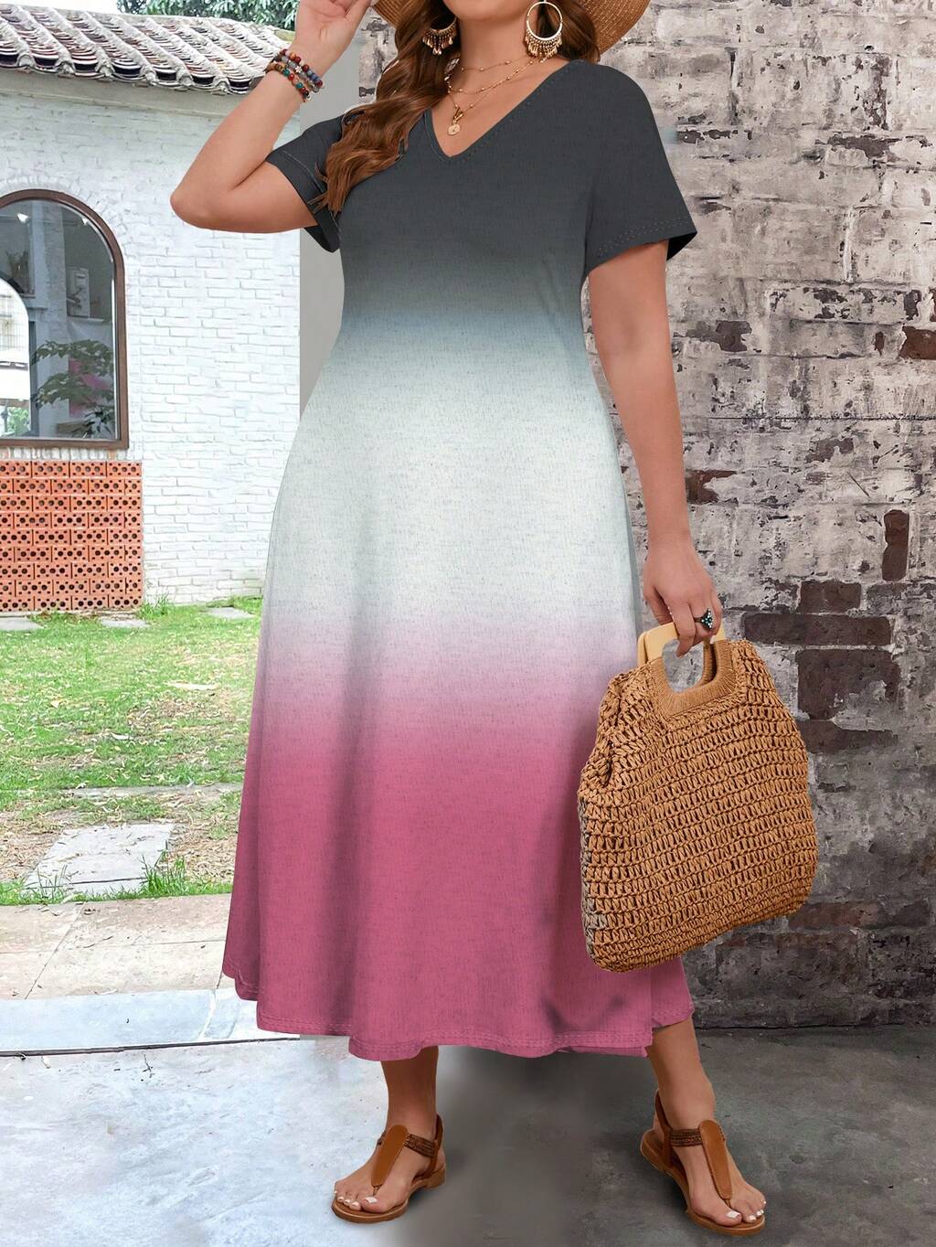 Plus Size Gradient Color Block Long Dress For Women For Summer,Spring/Vacation
