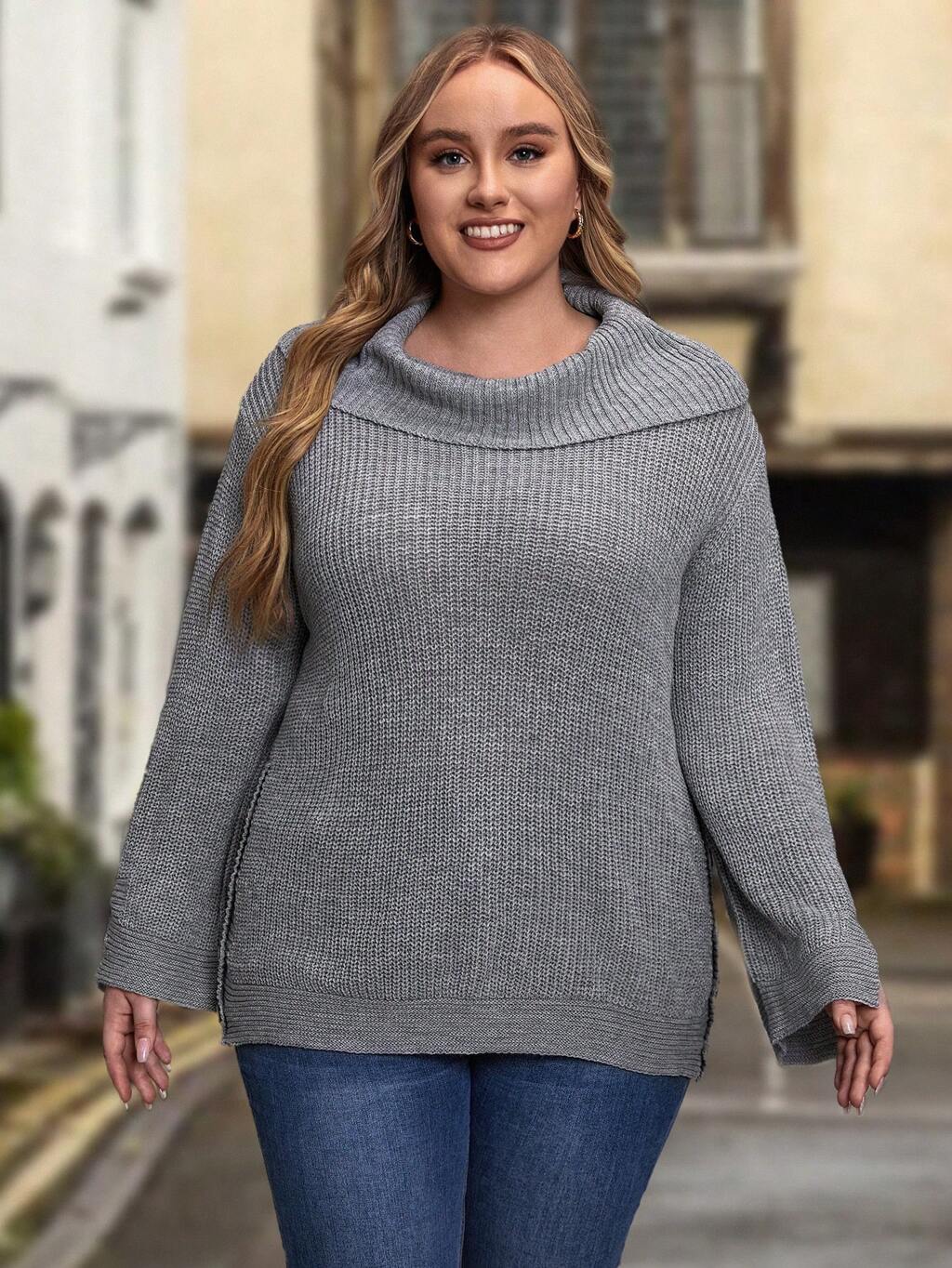 Plus Pointelle Knit Drop Shoulder Half Zip Sweater