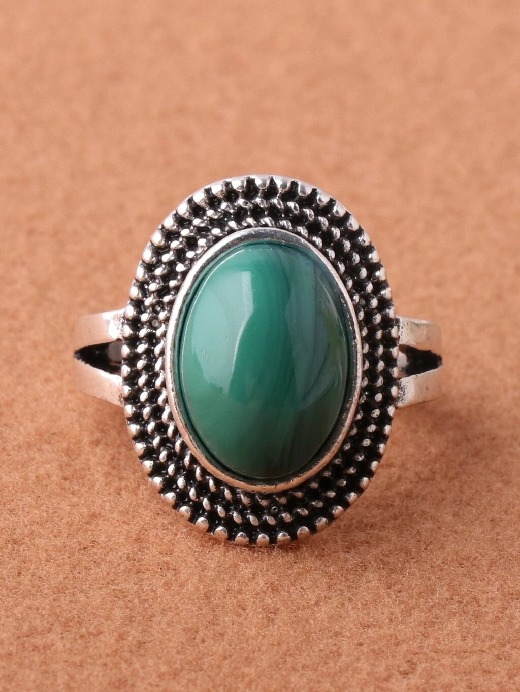 1pc Alloy Plated Vintage Silver Imitation Turquoise Resin Ring, Multi Colors Available