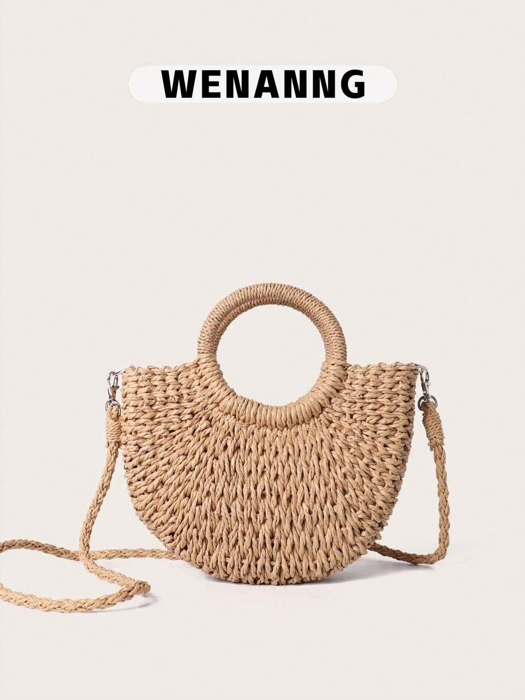 Round Top Handle Straw Bag For Women Woven Summer Bag Large Capacity Tote Bag For Half-Round Woven Straw Bag,Women's Summer Crossbody Bag,Casual Handbag For Mini Round Handle Straw Bag,Summer Essentials,Beach Essentials Women Bags For Vacation & Holiday,School Bag,Large Capacity,Portable,For Teen Girls Women College Students,Perfect For Office,College,Elementary School,Middle School,High School,Work,Business,Commute, Wicker Bag