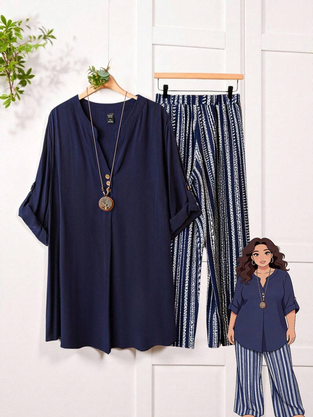 Plus Size Women 2pcs/Set Notch Neck Sleeveless Top And Striped Wide Leg Pants Casual Outfit, Winter Clothes For Women,Holiday Outfits Boho