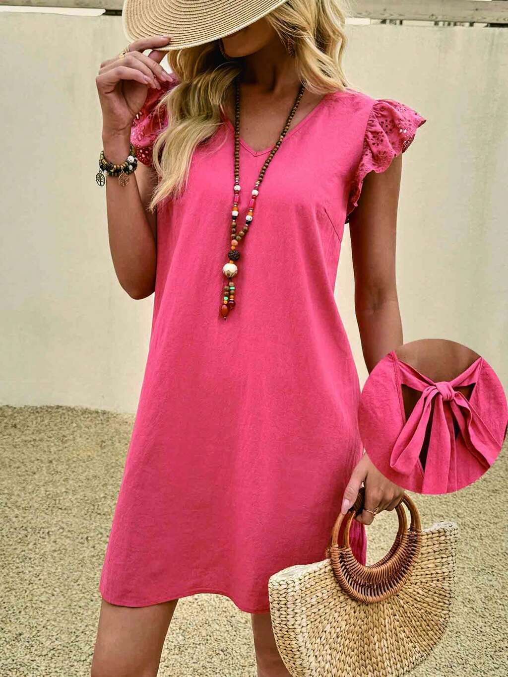 Women's Solid Color Minimalist Short Cap Sleeve Casual Dress