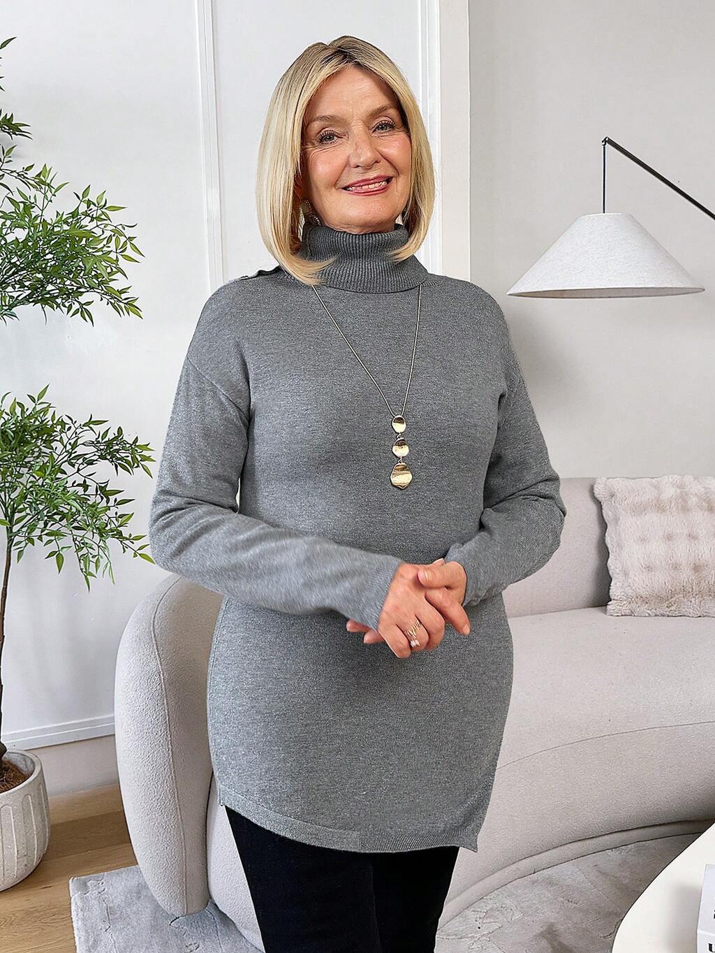 Women Solid Color Turtleneck Dropped Shoulder Long Sleeve Loose Casual Sweater, Autumn/Winter