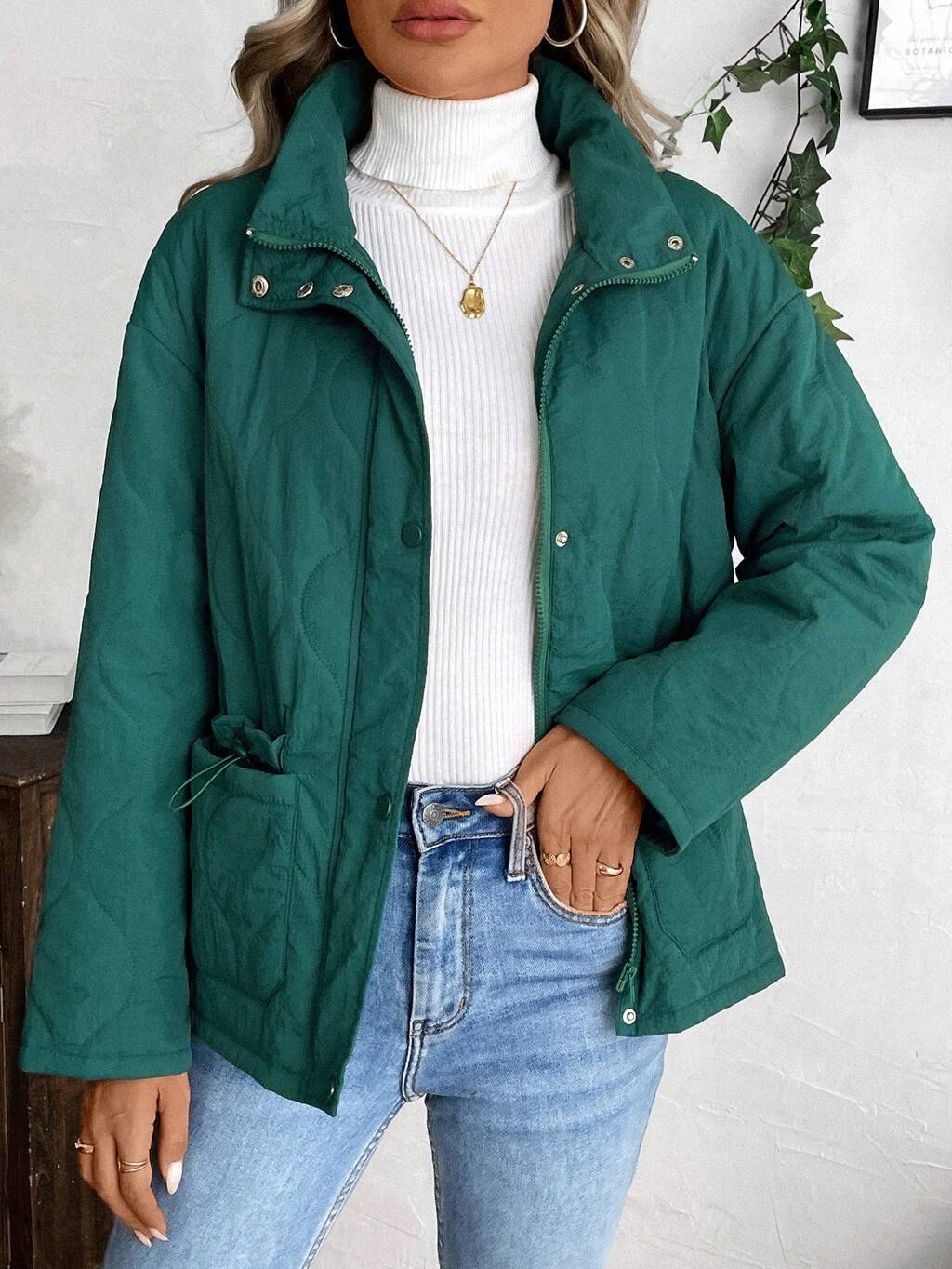 Women Casual Solid Color Thermal Lined Mid-Length Jacket, Autumn/Winter