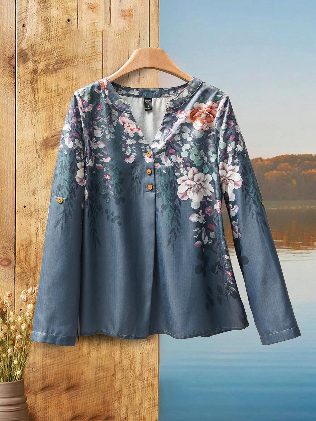 Women's Floral Print Round Neck Casual Long Sleeve T-Shirt, Fall Top