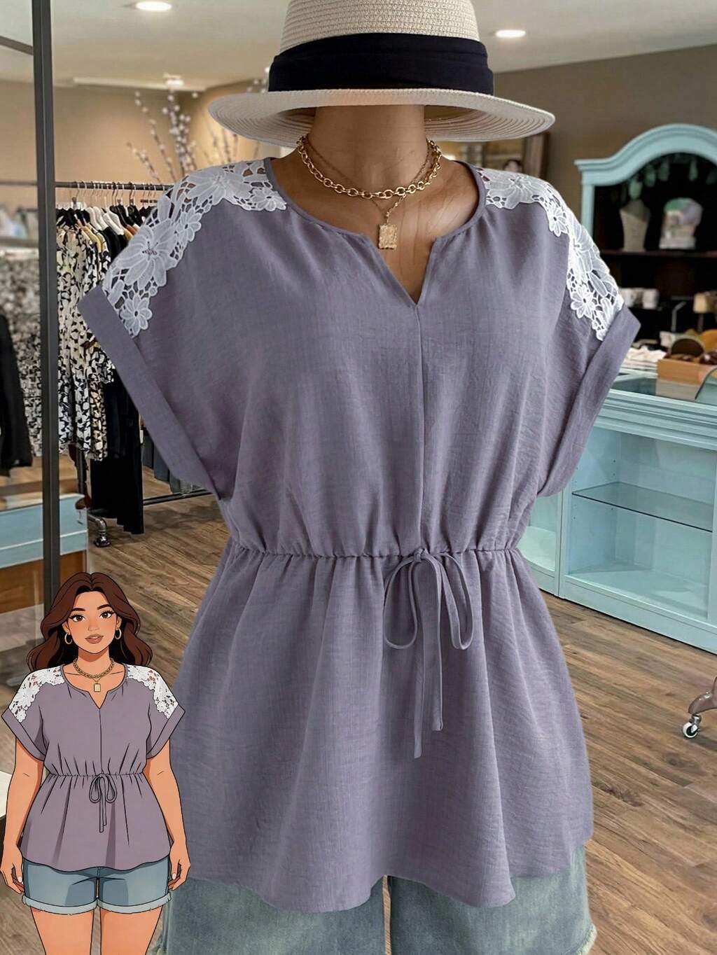 Plus Size Women Lace Trim Ruffle Casual Versatile Daily Wear Blouse
