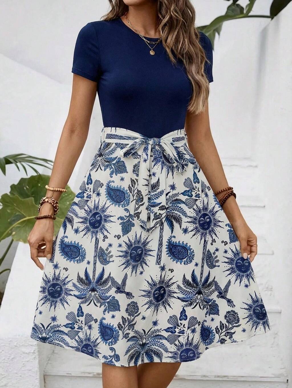 Women's Vacation Sun Face Print Round Neck Short Sleeve Casual Mid-Length Dress Summer Dresses For Women Summer Outfits For Women Elegant Dresses For Women Elegant Dresses For Ladies