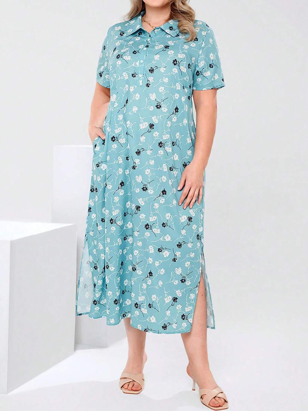 Plus Size Casual Fashionable Simple Daily Dress Spring Outfits For Women Elegant Floral Sage Green