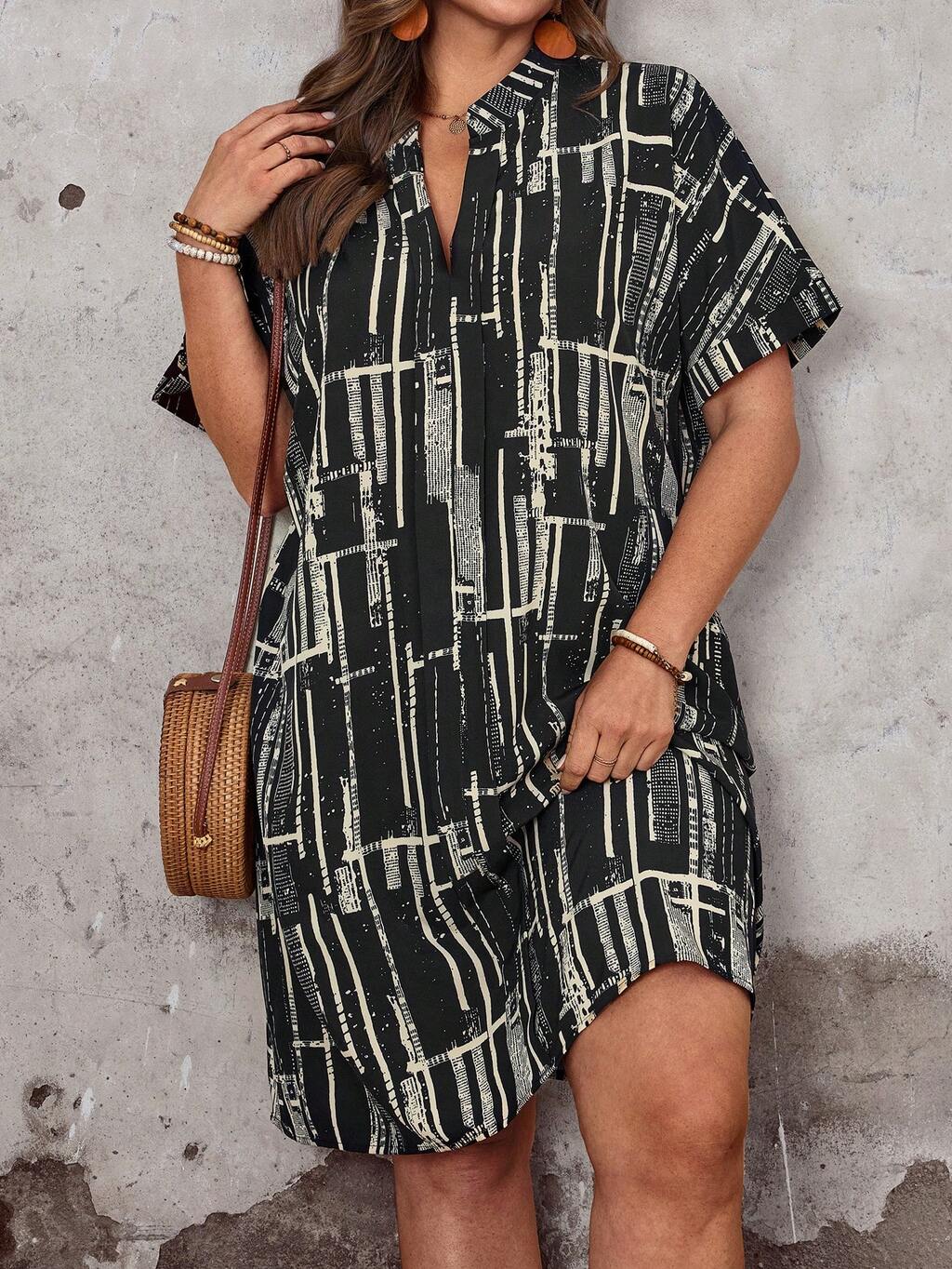 Vestido de verano de manga corta con cuello en V y estampado geométrico para mujer de talla grande