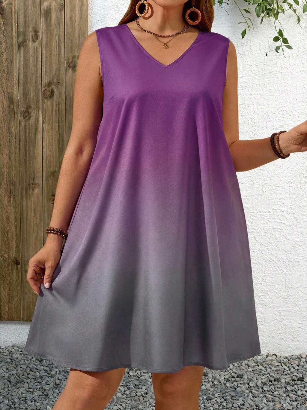 Vestido casual sin mangas de talla grande con degradado para vacaciones