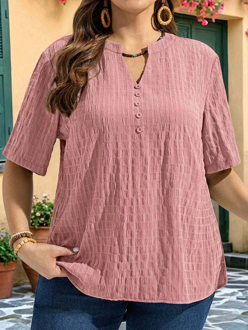 Camisa de talla grande de unicolor con cuello entallado para el verano
