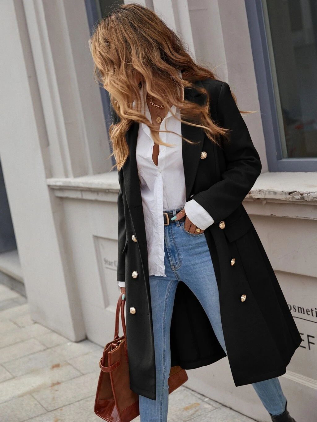 Blazer ligero de mujer con frente abierto, blusa básica para el transporte urbano, abrigo exterior minimalista y de moda para uso casual en la oficina en otoño/invierno