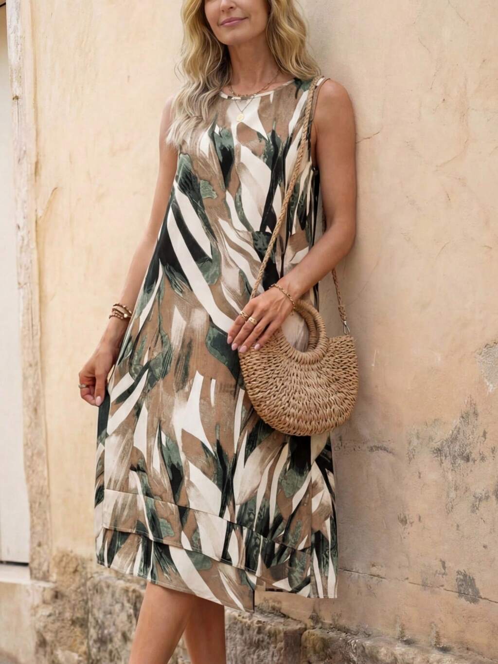 Vestido casual de talla media sin mangas con estampado total para vacaciones