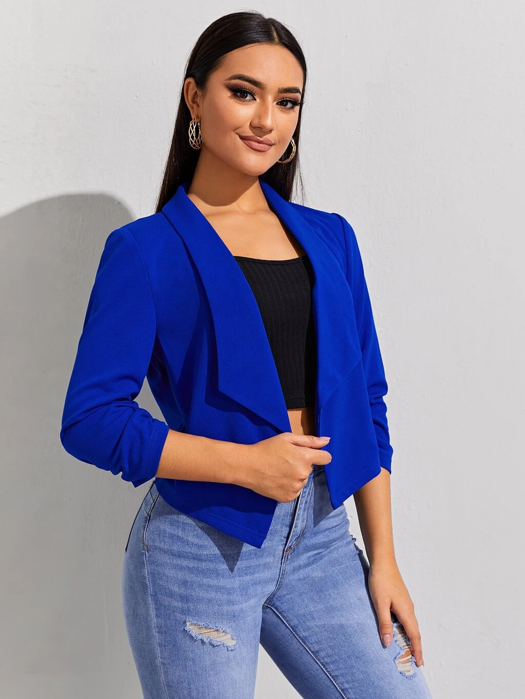 Blazer abierto de frente sólido para otoño/invierno, informal